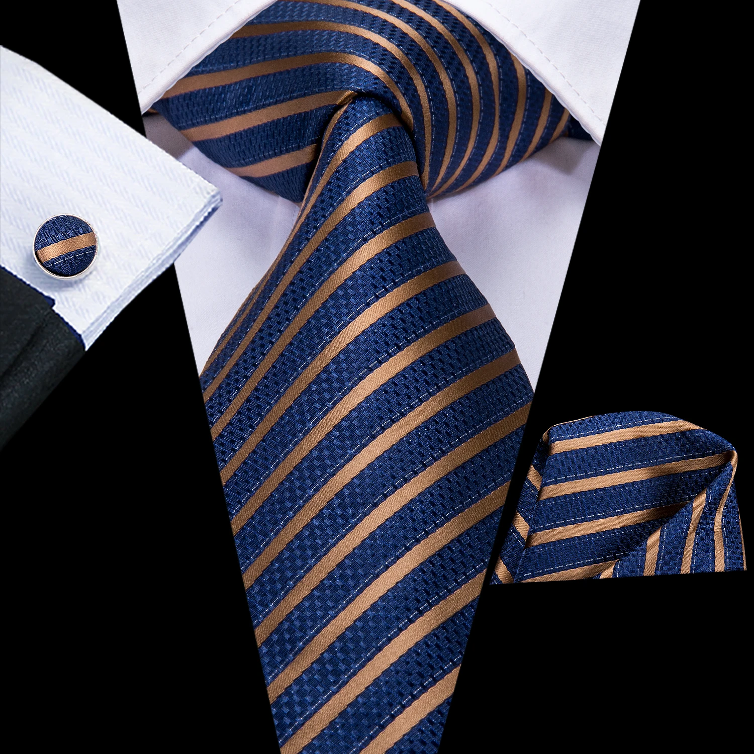 Hi-Tie Подарочный мужской галстук темно-синий полосатый Шелковый Свадебный галстук для мужчин Hanky Cufflink набор деловые вечерние прямые поставки модный дизайн