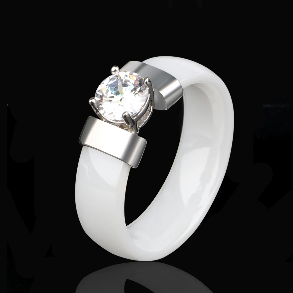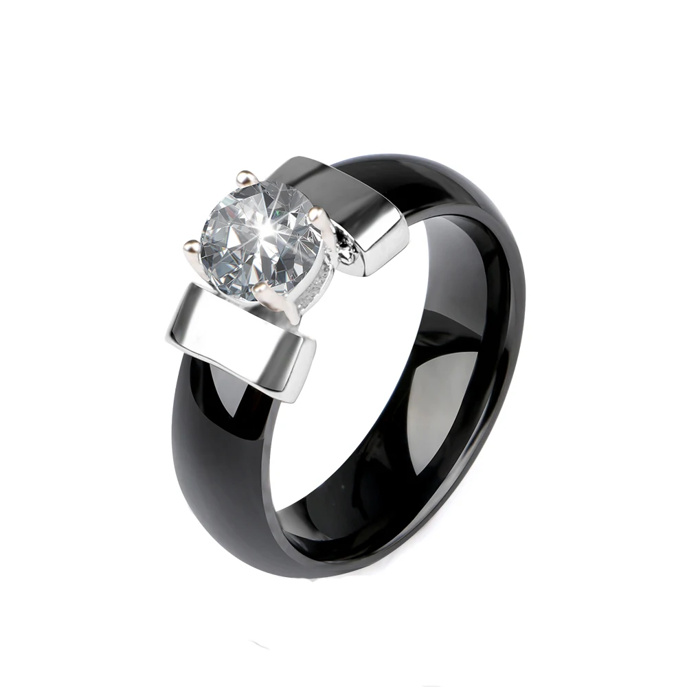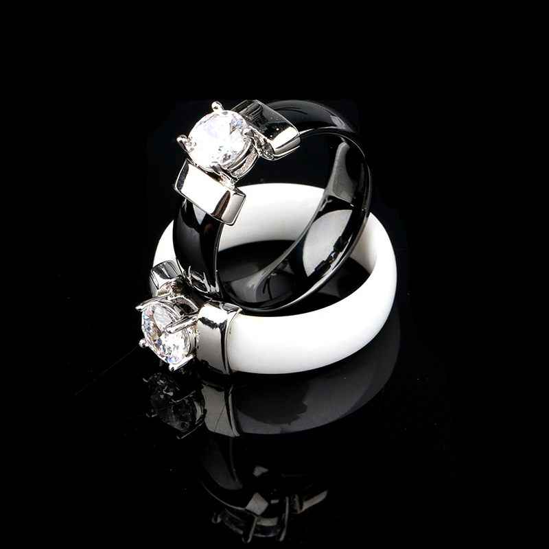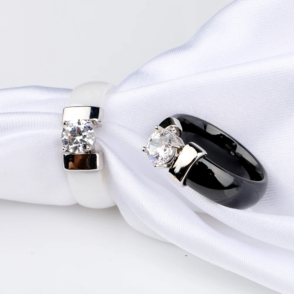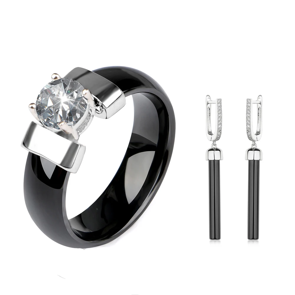 Керамические кольца с большими кристаллами 6 мм, длинные керамические серьги-капли для женщин, Модный Ювелирный Набор, здоровый гладкий материал, черный и белый цвета