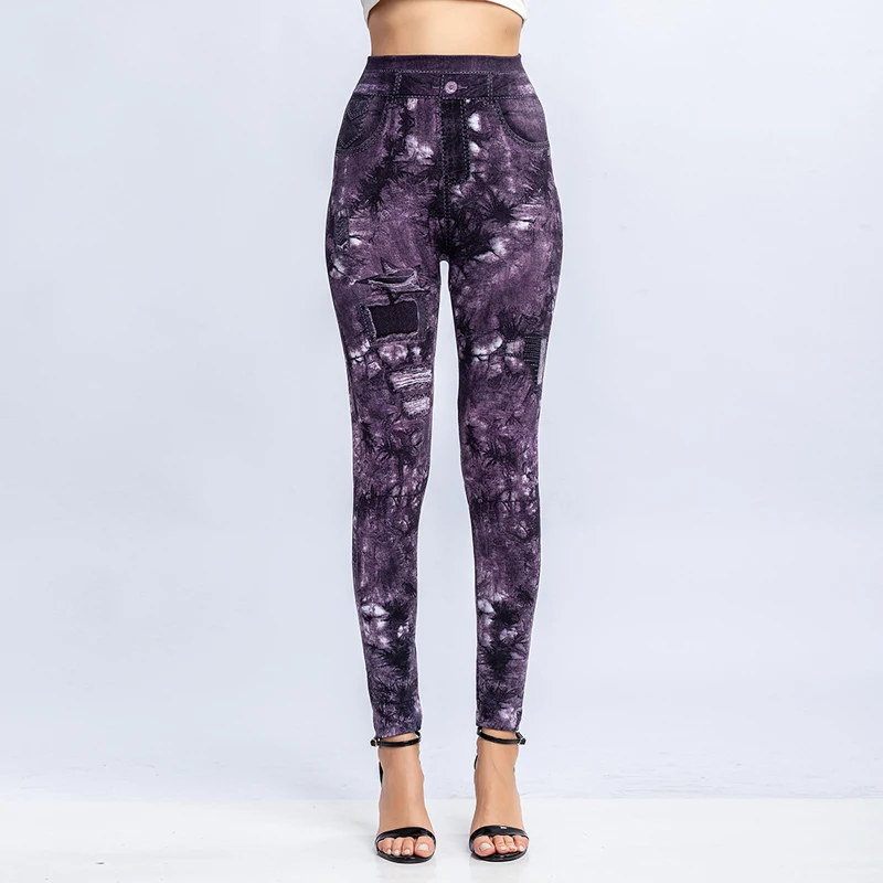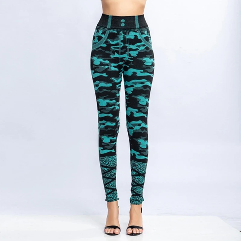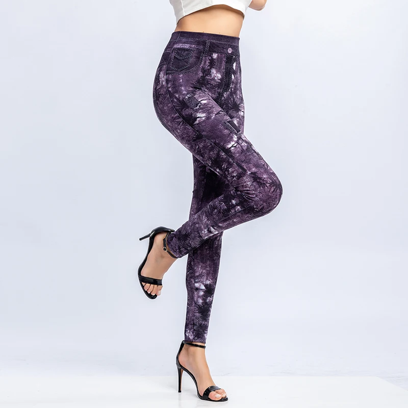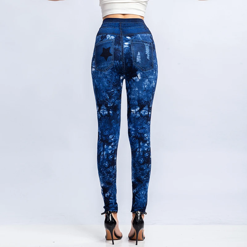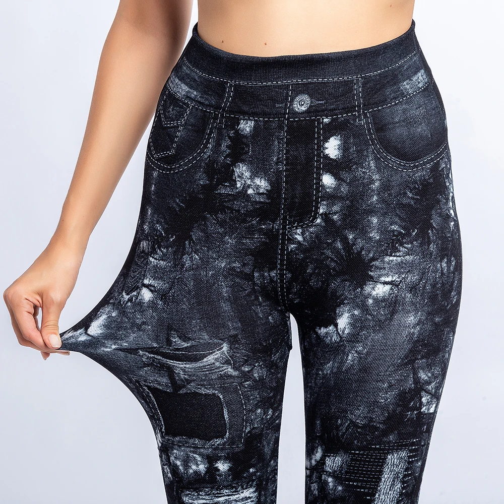 Леггинсы женские спортивные, с принтом, с карманами, 2021, с высокой талией, большие размеры, лосины из джинсовой ткани