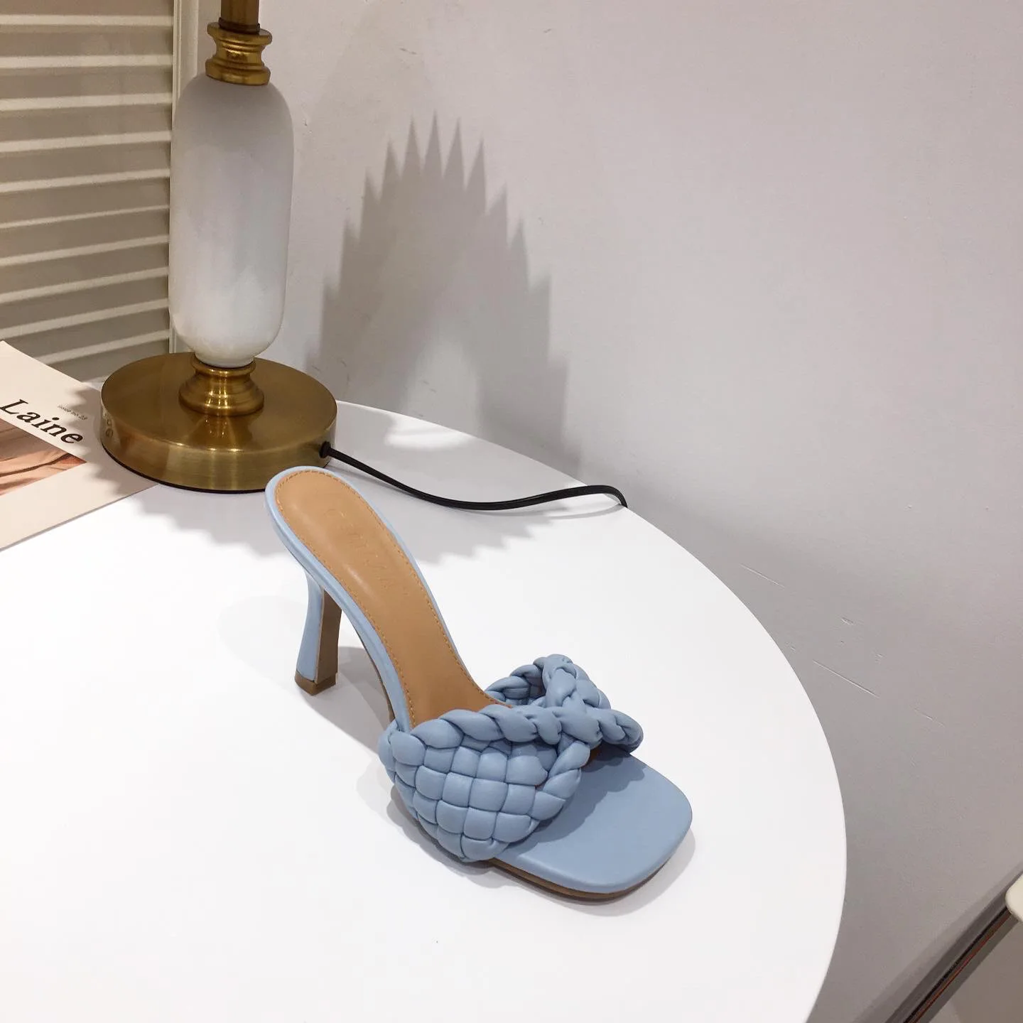Туфли женские на высоком каблуке, квадратный носок, модные шлепанцы, кожа, сланцы, роскошные дизайнерские пляжные сандалии, сланцы