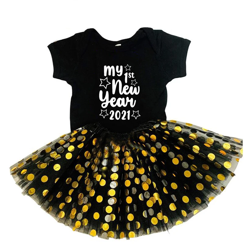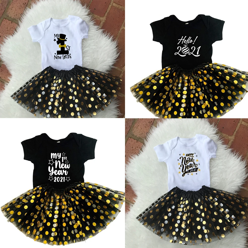 Одежда для маленьких девочек комплекты одежды для Нового года костюм для Cake Smash My First New Year; Футболка; Юбка-пачка + Детские комплекты рождественской одежды праздников одежда падение корабля