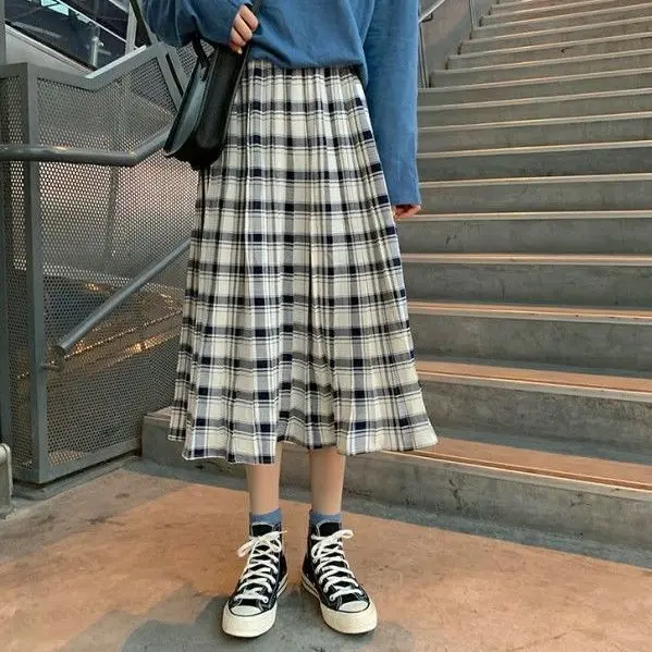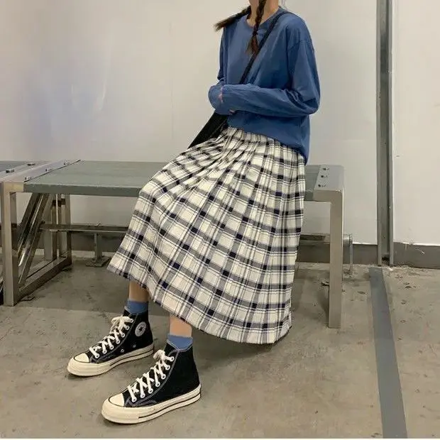 Летняя хлопковая юбка А-силуэта, в клетку, с завышенной талией