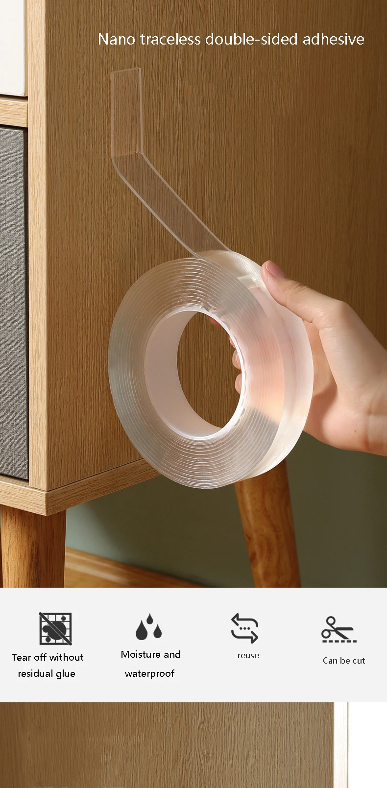 Двусторонняя лента нано-лента прозрачная немаркирующая многоразовая водонепроницаемая лента можно мыть в домашних условиях
