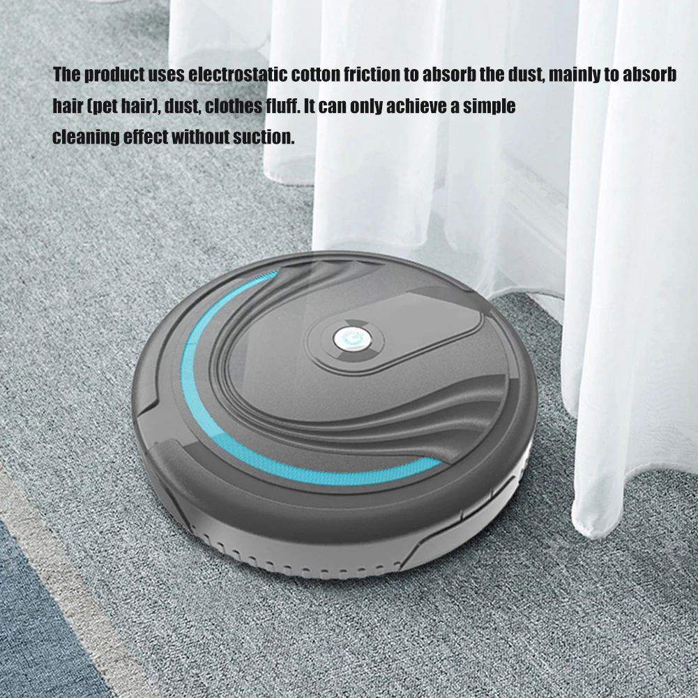 Бытовой автоматический умный робот-пылесос для уборки пола и удаления пыли Характеристики: Дизайн подошвы-это одноразовая хлопковая ткань, которую легко заменить. Пылесос специально разработан для бытовой очистки. Низкий децибел, не повлияет на работу или сон. Это может сэкономить ваше время и дать вам больше свободного места. Наименование товара: пылесос Материал: АБС + металл Способ работы: механический Источник питания: зарядка от USB/питание от аккумулятора (опционально) Батарея: литиевая батарея (входит в комплект)/3 батарейки АА (не входят в комплект) Функция синхронизации: нет Номинальная Напряжение: 3,6 V Тип переключателя: обычная кнопка Маршрут очистки: случайный Условия обслуживания: домашнее хозяйство Применимый диапазон: 90-120 квадратных метров Пульт дистанционного управления: нет ЖК-дисплей: нет Виртуальная стена: нет Метод очистки: Одноразовая губка Характеристики: автоматический, портативный, простой в использовании, эффективный, бесшумный Диаметр: 23 см/9,06 ", Толщина: 5 см/1,97" (прибл.) Примечания: Продукт использует электростатическое трение хлопка для поглощения пыли, в основном для поглощения волос (ПЭТ волос), пыли, одежды пух. Он может достигать только простого эффекта очистки без всасывания. Благодаря светильник и экрана Цвет Товара может быть s светильник ly отличается из-за характеристик монитора компьютера. Возможны незначительные отклонения в размерах из-за различных измерений вручную. Посылка включает в себя: [Перезаряжаемый Тип] 1 х пылесос 16 лент 1 упаковка электростатического хлопка (20 шт.) 1 x зарядный кабель Или [Тип аккумулятора] 1 х пылесос (батарея в комплект не входит) 16 лент 1 упаковка электростатического хлопка (20 шт.)