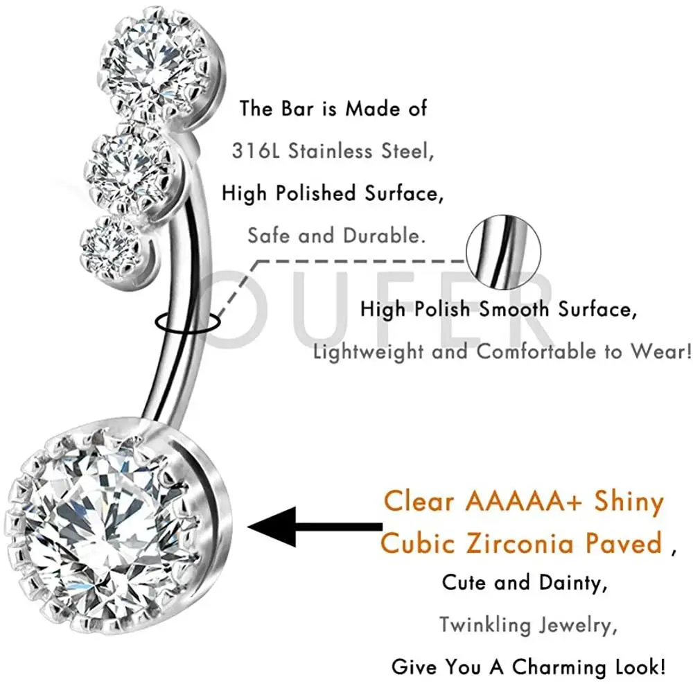 Классические циркониевые кольца для пупка для женщин и девушек, пир...