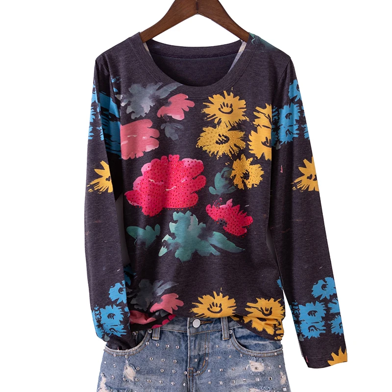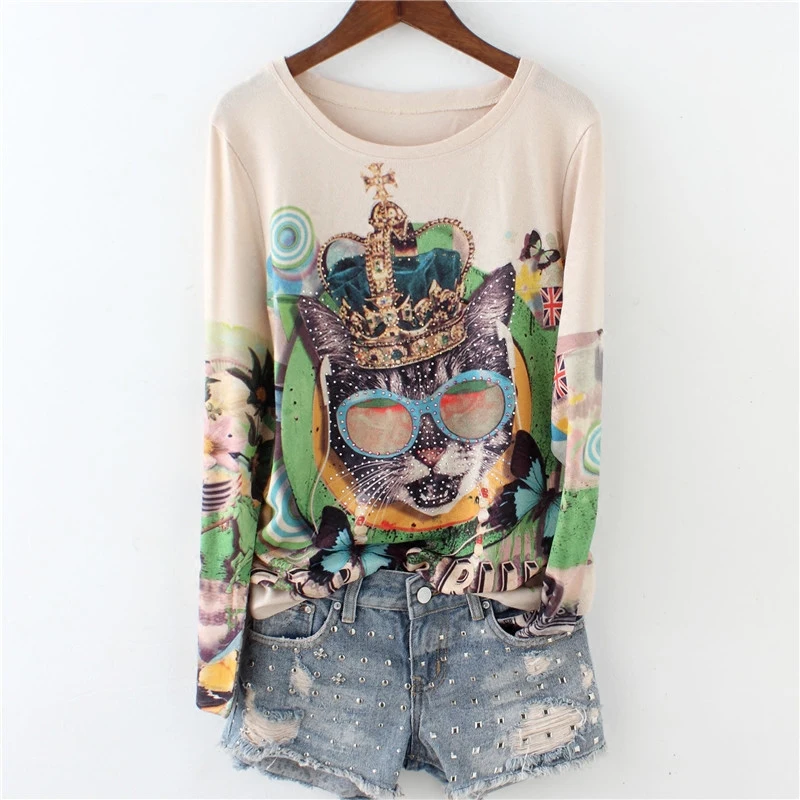 Футболка женская, из 2020 хлопка, с принтом кошек и бисером, 4XL, весна размера плюс