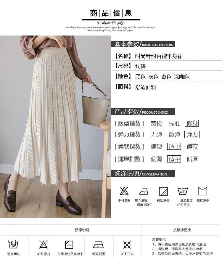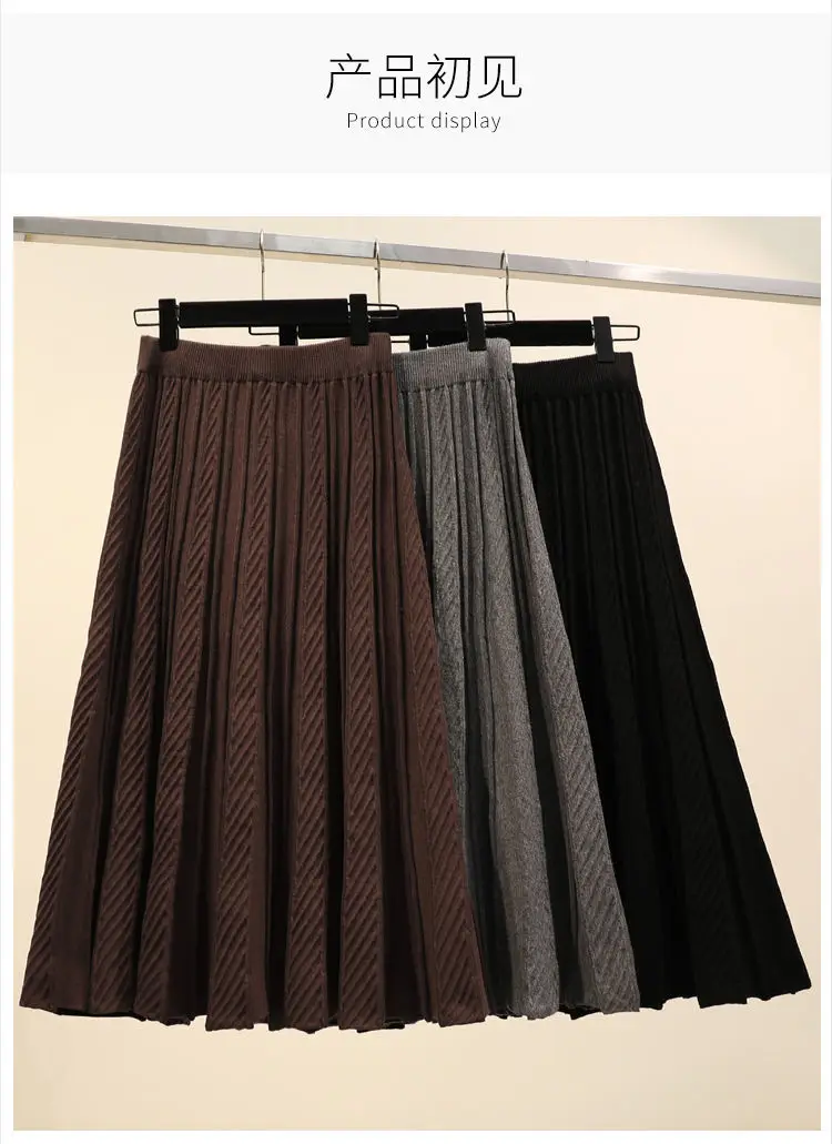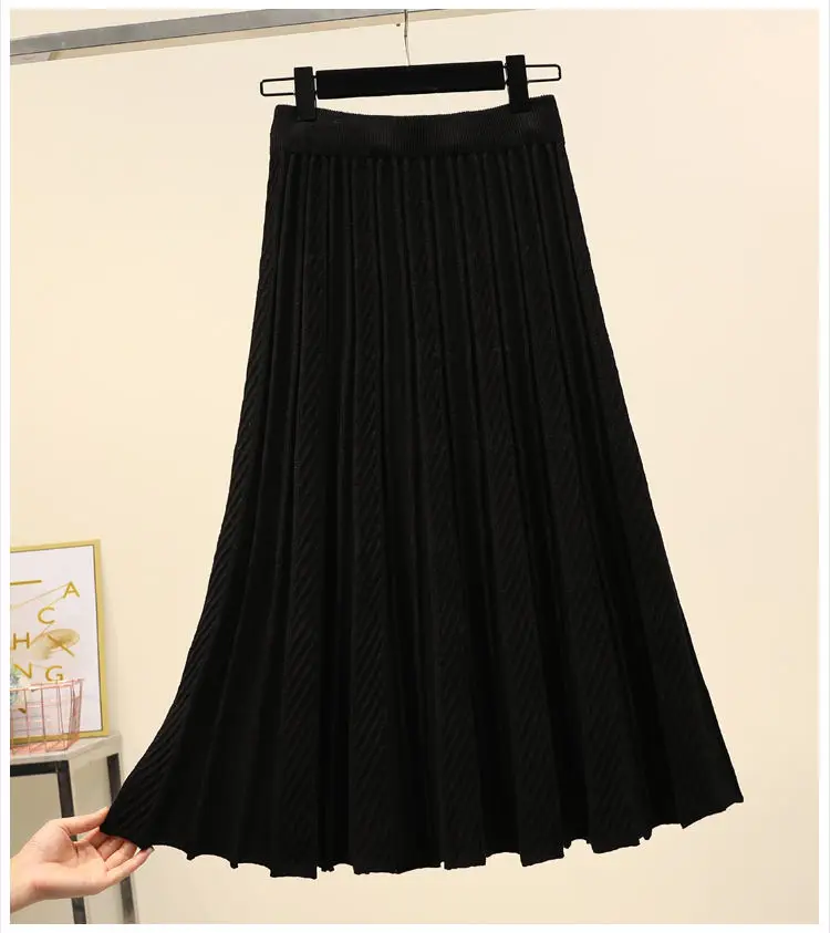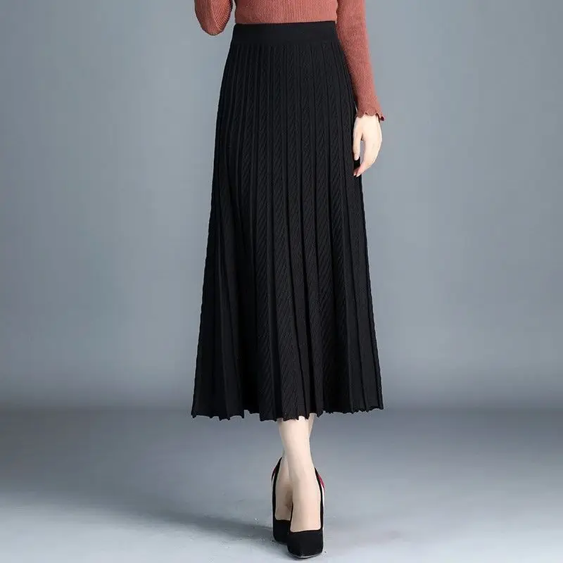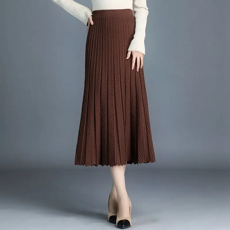 Юбка Женская осенне-зимняя Модная трикотажная шерстяная плиссированная юбка А-силуэта с высокой талией и широким подолом женские юбки