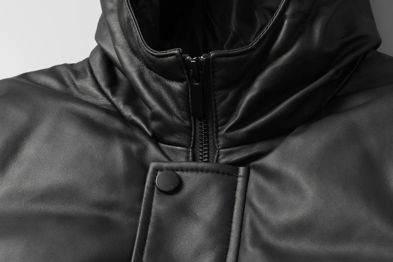 Мужская кожаная куртка с капюшоном, повседневная куртка из натураль...