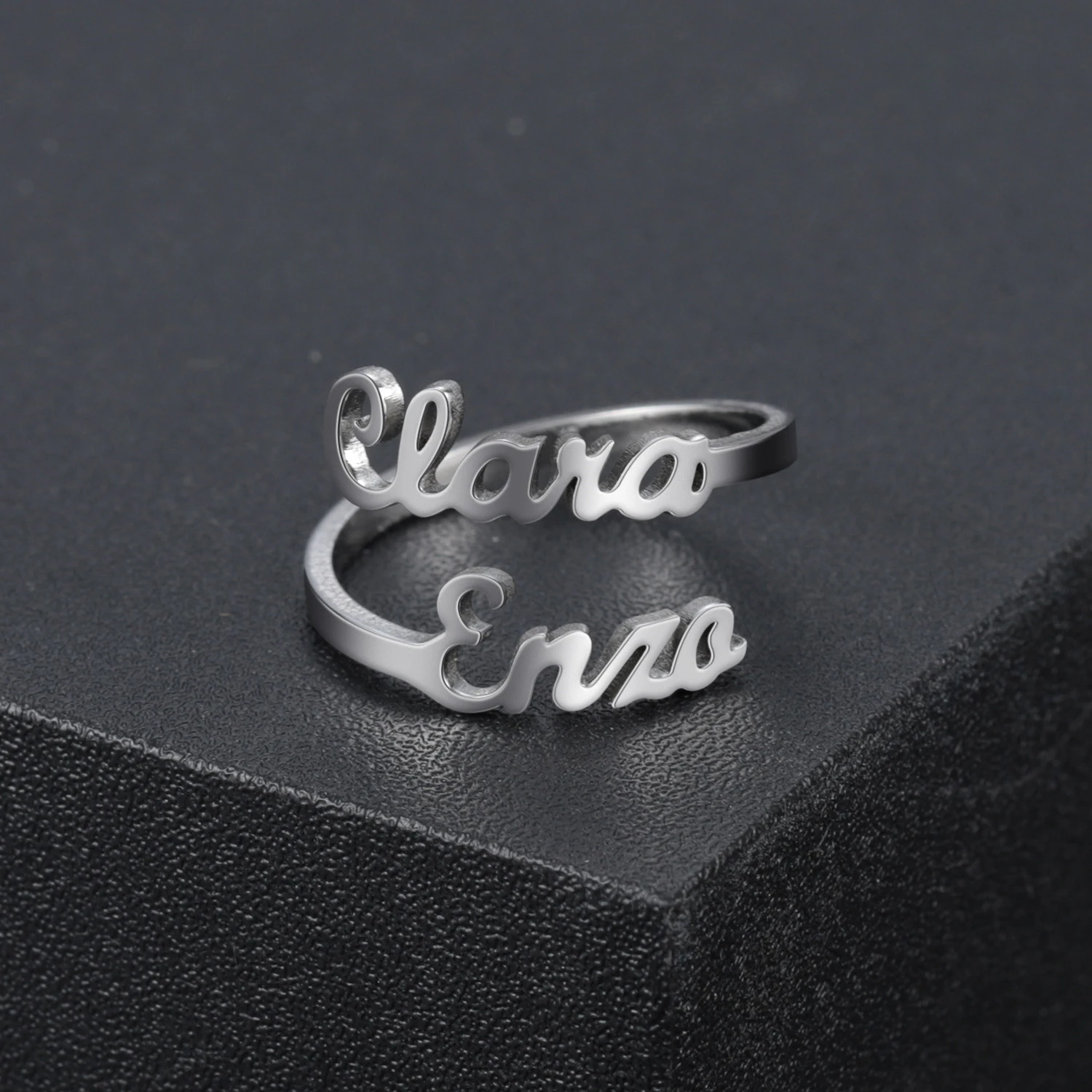 Индивидуальные двойные кольца с именем, регулируемые женские обруча...