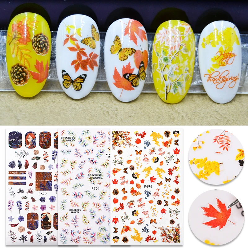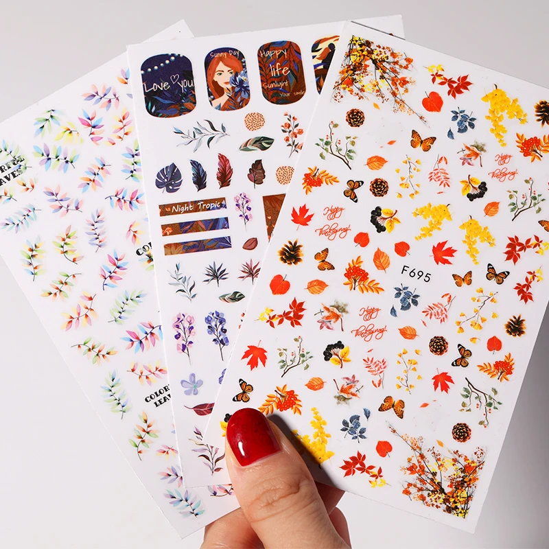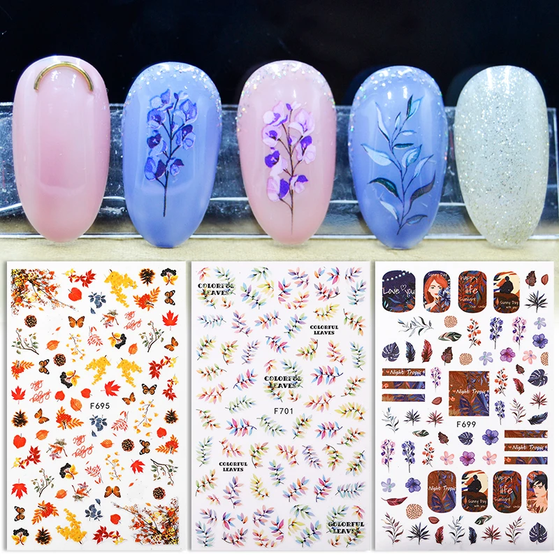 1 лист 3D наклеек для ногтей листья цветок узор наклейки для ногтей слайдеры красочные самодельные Украшения для ногтей