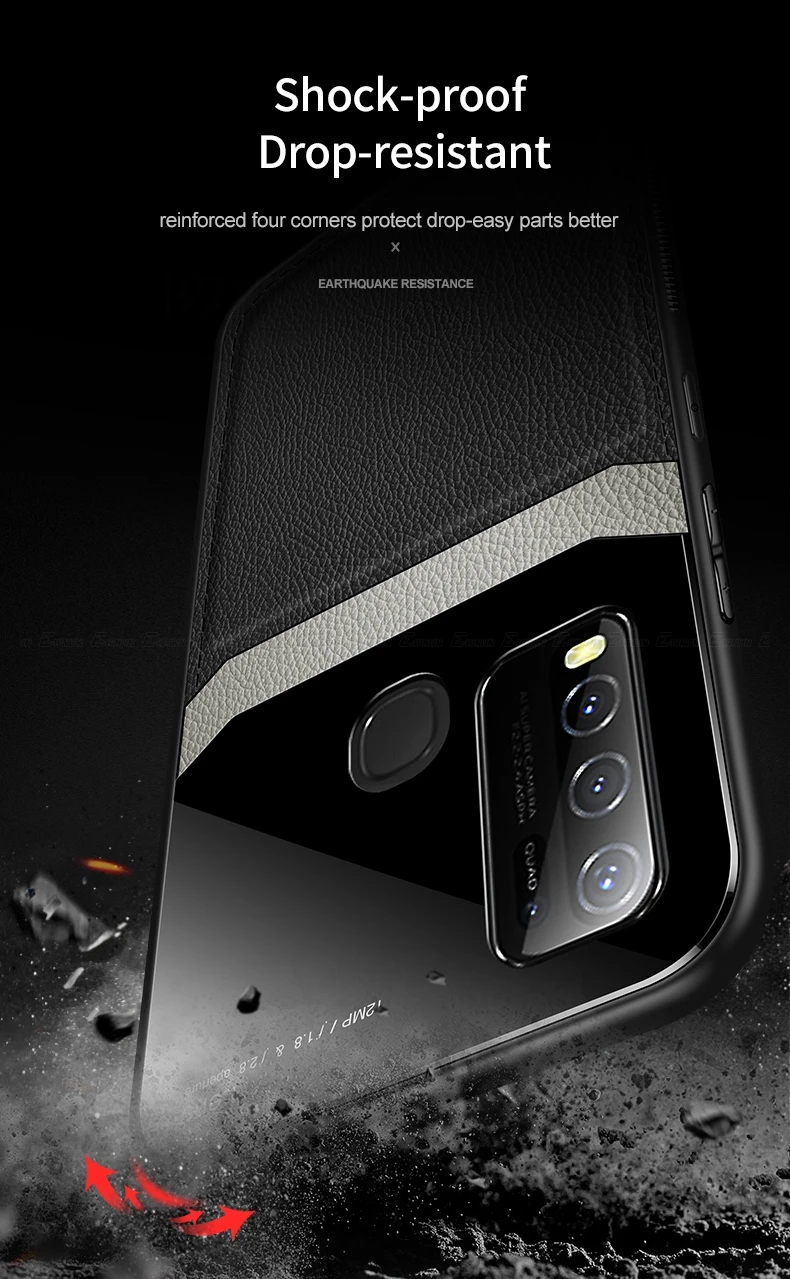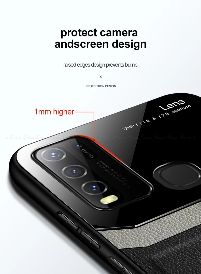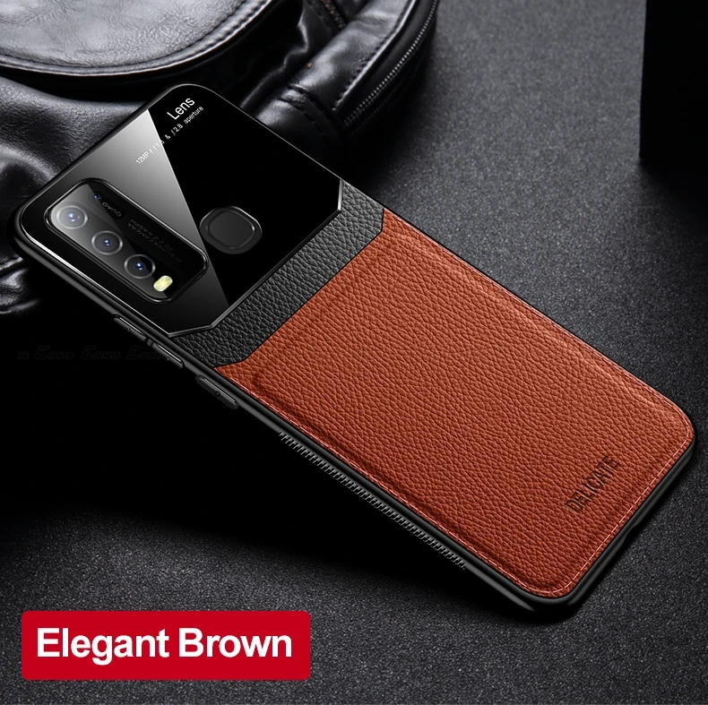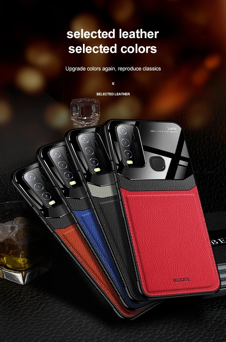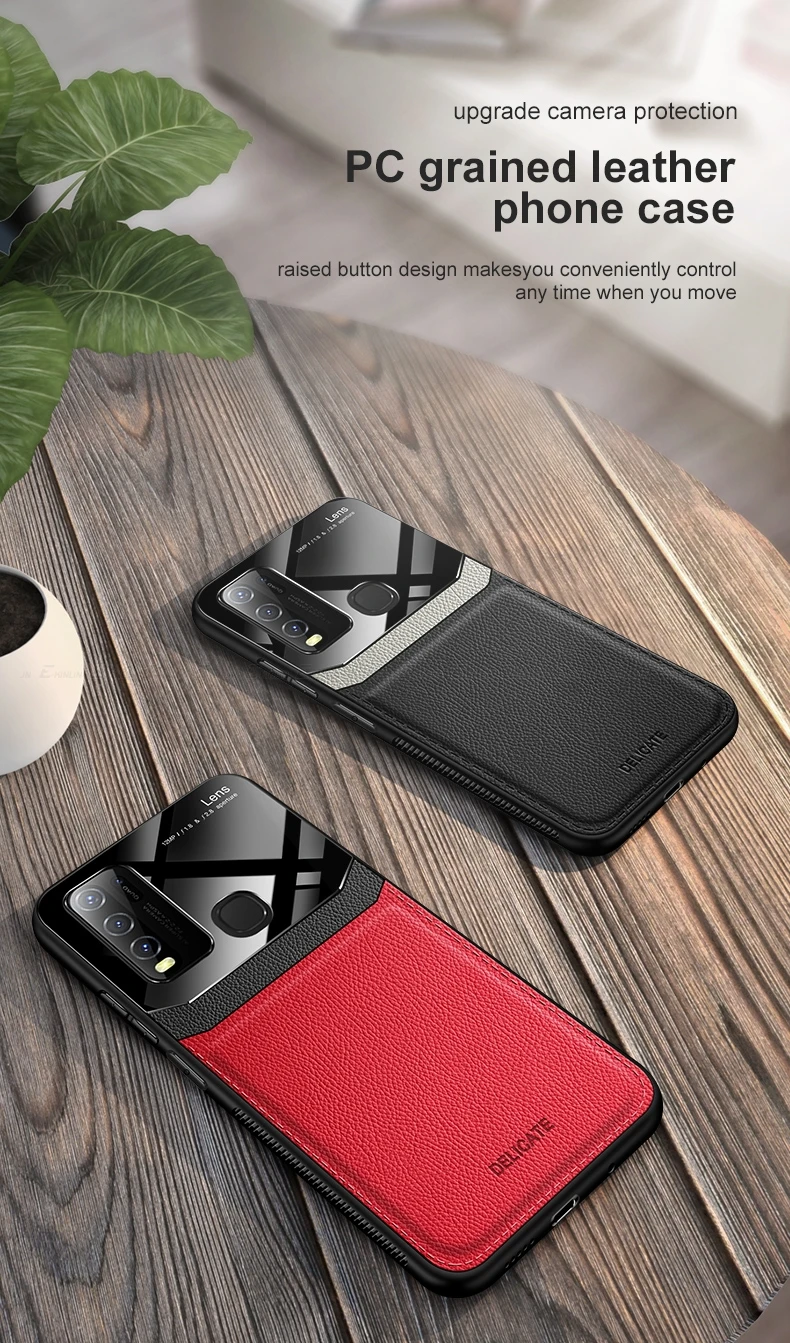 Силиконовый чехол для Vivo Y12A Y12s Y20 Y20i Y20s G Y12s Y12 Y15 Y30 Y30i Y19 Y17 Y50 личи кожаный Зеркальное стекло для задней панели телефона