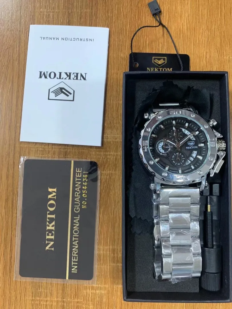 Часы мужские кварцевые NEKTOM, водонепроницаемые, на стальном ремешке