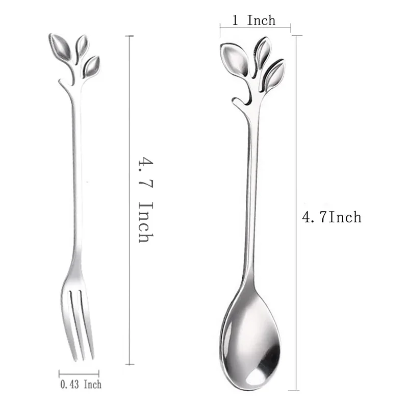 5 ложка + 5 вилки Нержавеющаясталь лист Кофе ложка для торта вилка десертные ложки, набор чайных ложек