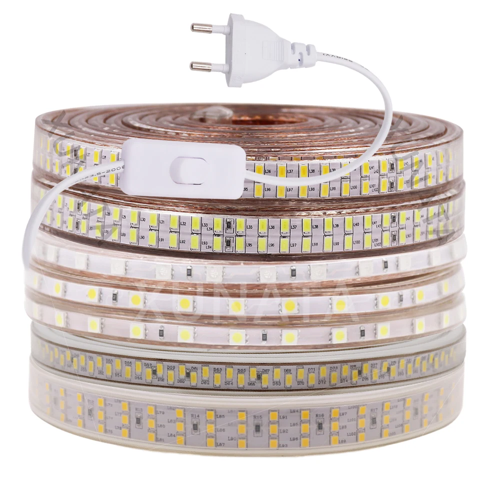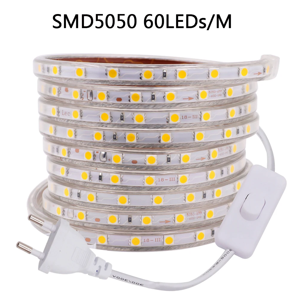 220V Светодиодные ленты светильник с переключатель для поверхностного монтажа 5730 2835 5050 гибкая светодиодная лента 180240 светодиодовm Открытый Водонепроницаемый светодиодный светильник ening штепсельная вилка европейского стандарта