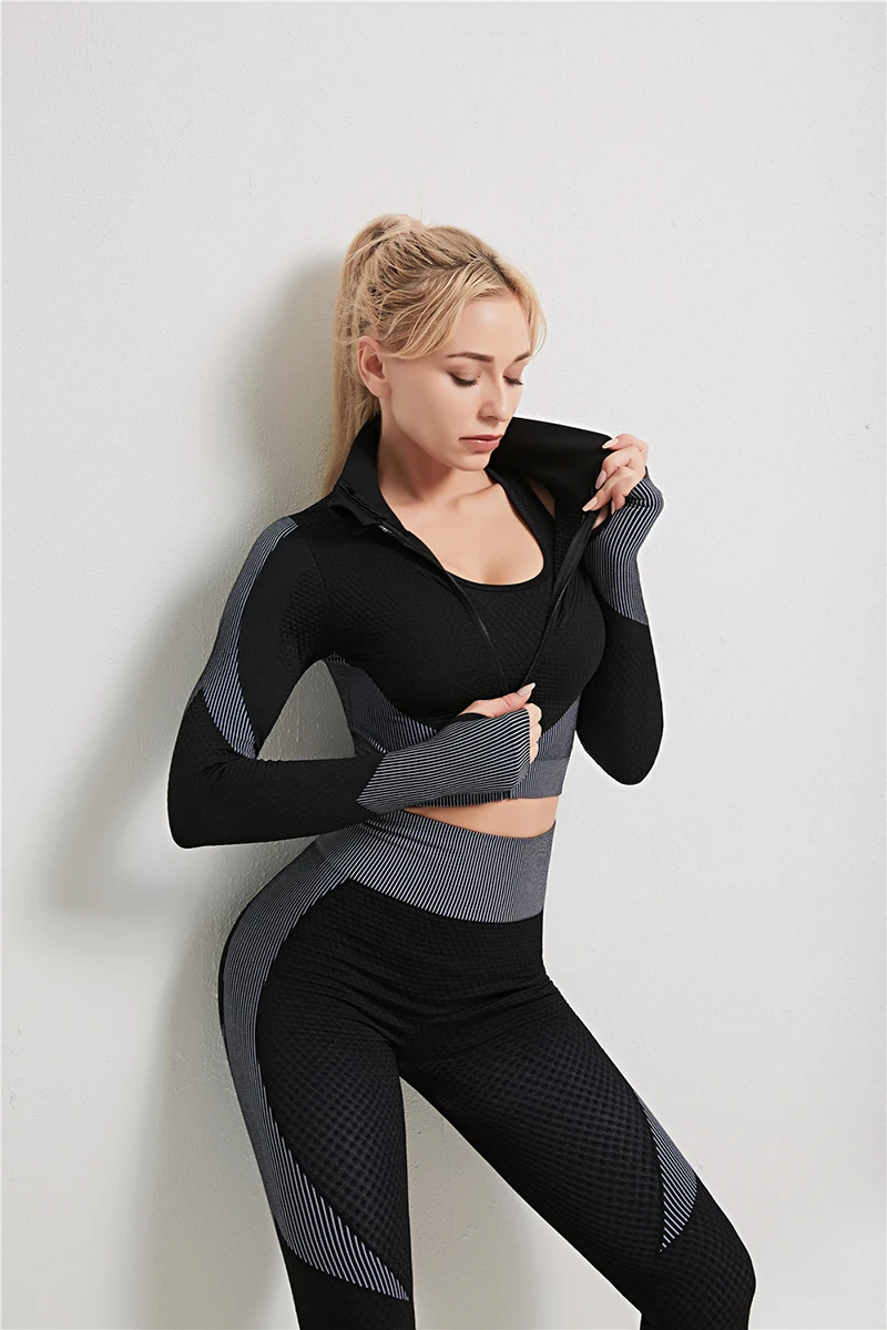 SOISOU 23 шт.комплект, женский спортивный костюм, спортивная одежда, комплект для йоги, бесшовные вязаные спортивные костюмы, женские леггинсы для фитнеса, женский костюм
