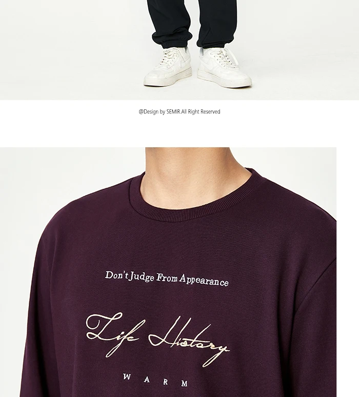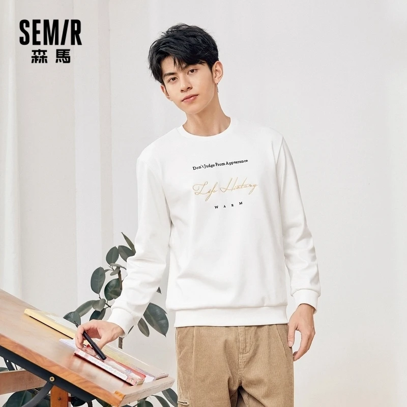Свитшот SEMIR мужской с круглым вырезом, худи с надписью контрастной расцветки, стильная теплая Вельветовая одежда в гонконгском стиле, осень 2020
