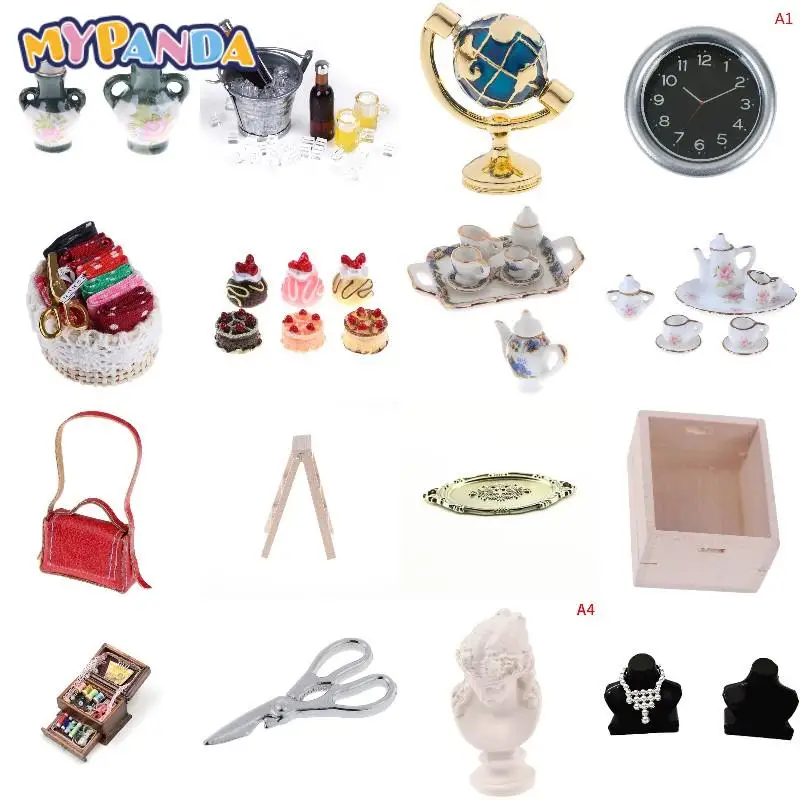 Тканевая корзина, Электрический Железный ноутбук, крем, торты, кухонные принадлежности, часы, ваза, лестница, бюст, сумочка, кошелек, ножницы, чашка для посуды, чайный набор, посуда, аксессуары для ванной, декор кукольного домика