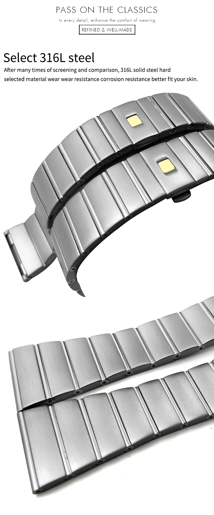Ремешок из нержавеющей стали 316L для часов, изогнутый браслет для ...