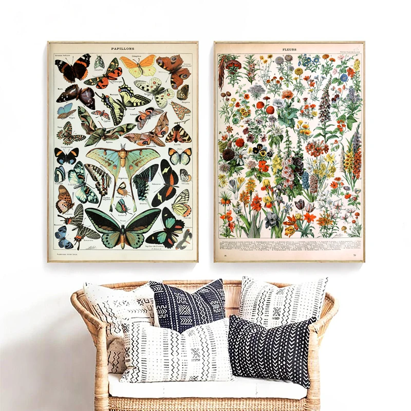 Винтажный постер с изображением бабочек, насекомых, детское образов...