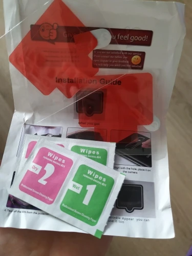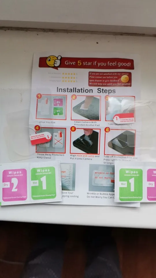 24 días ha tardado, con envío combinado. Está bien, con toallitas para limpiar (aunque está un poco seca) y secar antes de poner. Queda bien, y no hace sombras o cosas raras al hacer fotos