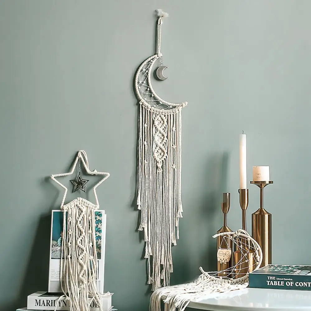 Скандинавская звезда Луна макраме домашний декор Aaccessories Boho Декор Рамадан для девочек Детская комната Декор стен Ловец снов на стену навесы