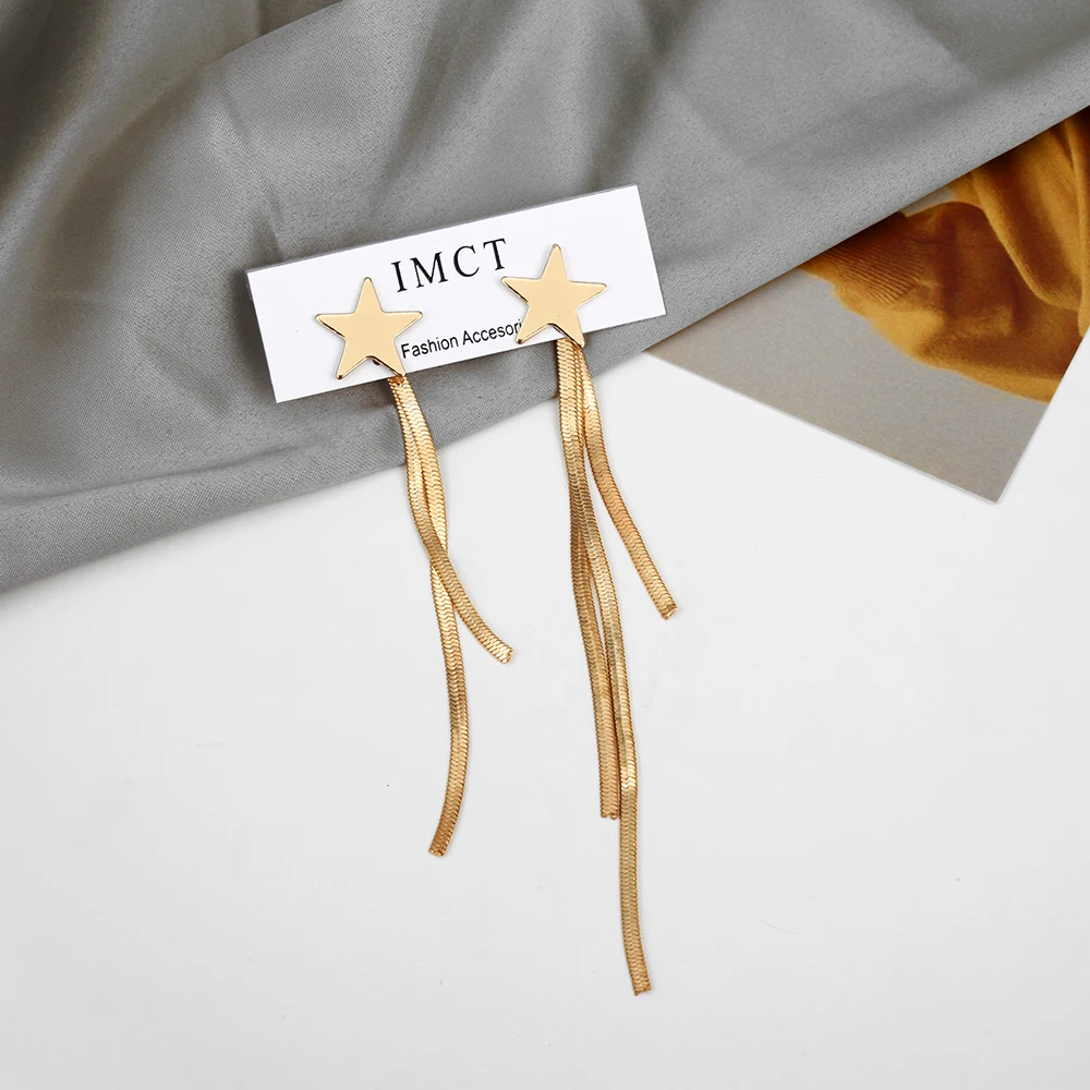 Серьги-подвески женские, золотистого цвета, с кисточками, геометрической формы