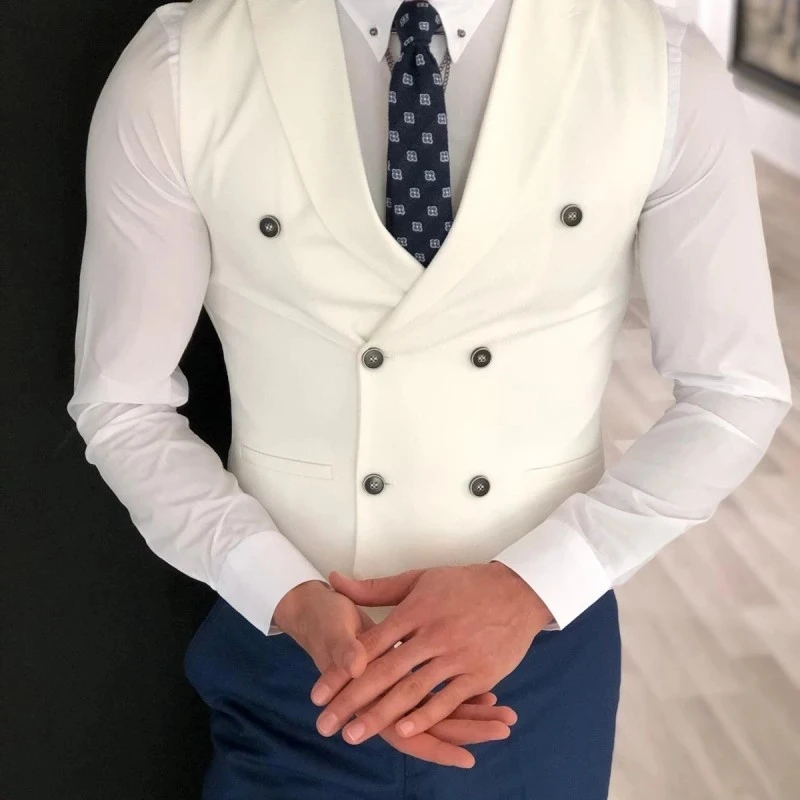 2021 двубортный приталенный мужской жилет цвета слоновой кости, цельный мужской костюм на заказ, безрукавка с заостренным лацканом, свадебная одежда для мужчин, мужская Талия