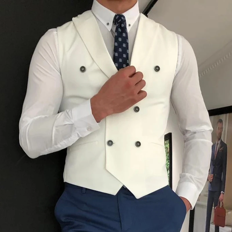 Мужской классический двубортный жилет, белый жилет с вырезом на вор...