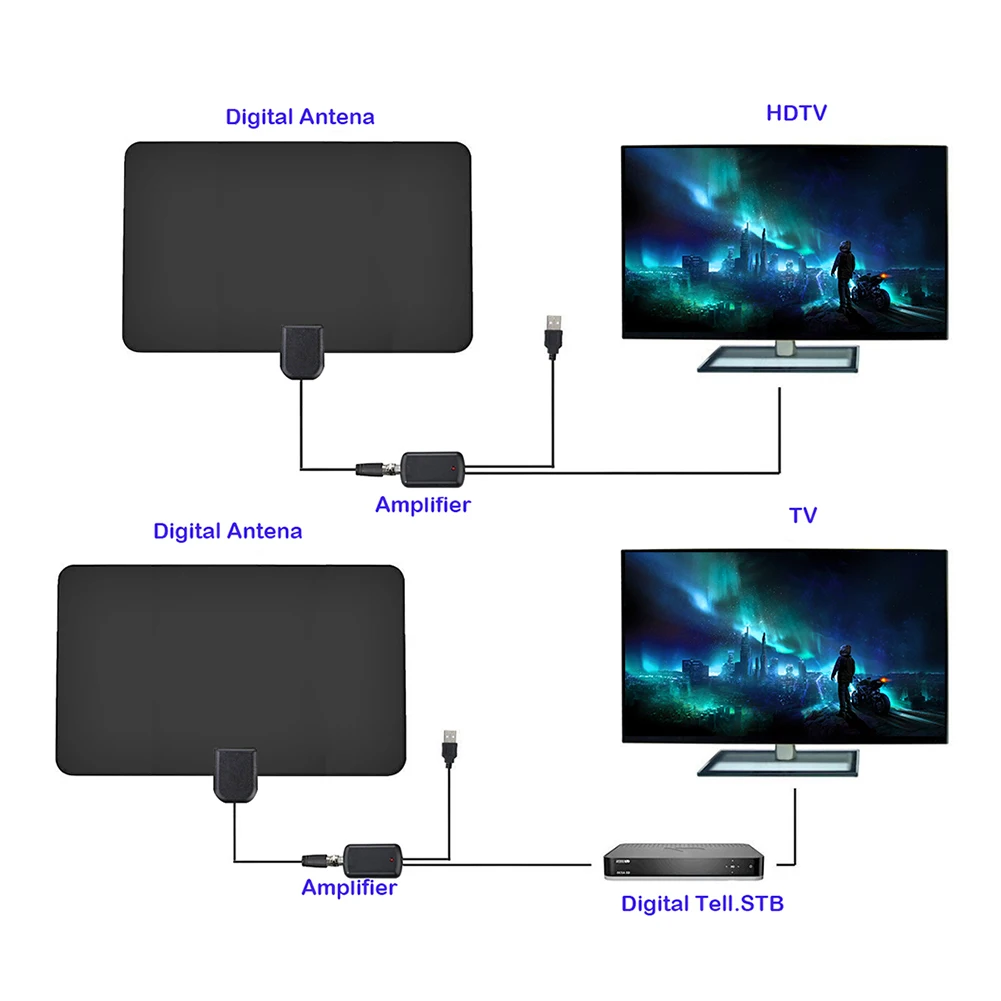 4K цифровая ТВ антенна 25 дБ с высоким коэффициентом усиления 50 миль диапазон мини Активная внутренняя усиленная HDTV антенна ТВ антенна плоский дизайн
