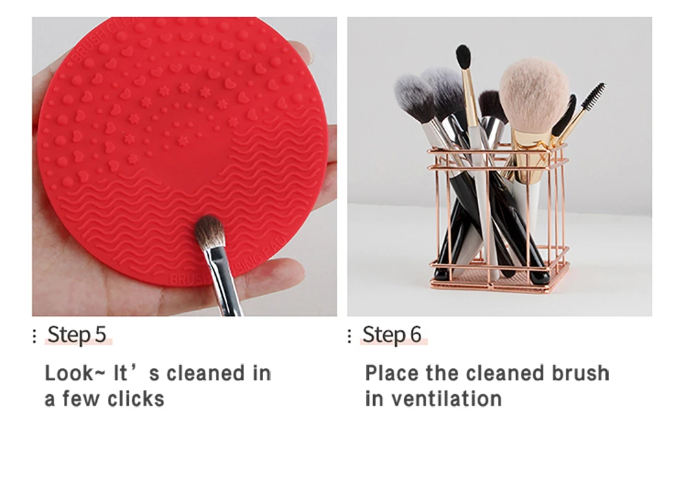 1. Намочите Кисть для макияжа водой и смягчите ее2. Нанесите мокрое пуховое средство на головку щетки3. Головка щетки выравнивается и повторно моется в пазе4. Мойте головку щетки вперед и назад5. Посмотрите, он очищается в несколько кликов6. Поместите очищенную щетку в вентиляцию