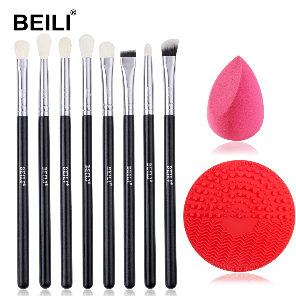 Набор кистей BEILI для макияжа, 8 шт., с 1 губкой и 1 кистью, коврик для очистки кисти из козы, кисти для растушевки теней