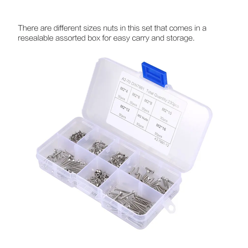 230 шт. M2 шестигранный болт с головкой в форме пуговицы резьба для деревянной вставки мебельные гайки ассортимент болт застежка из нержавеющей стали