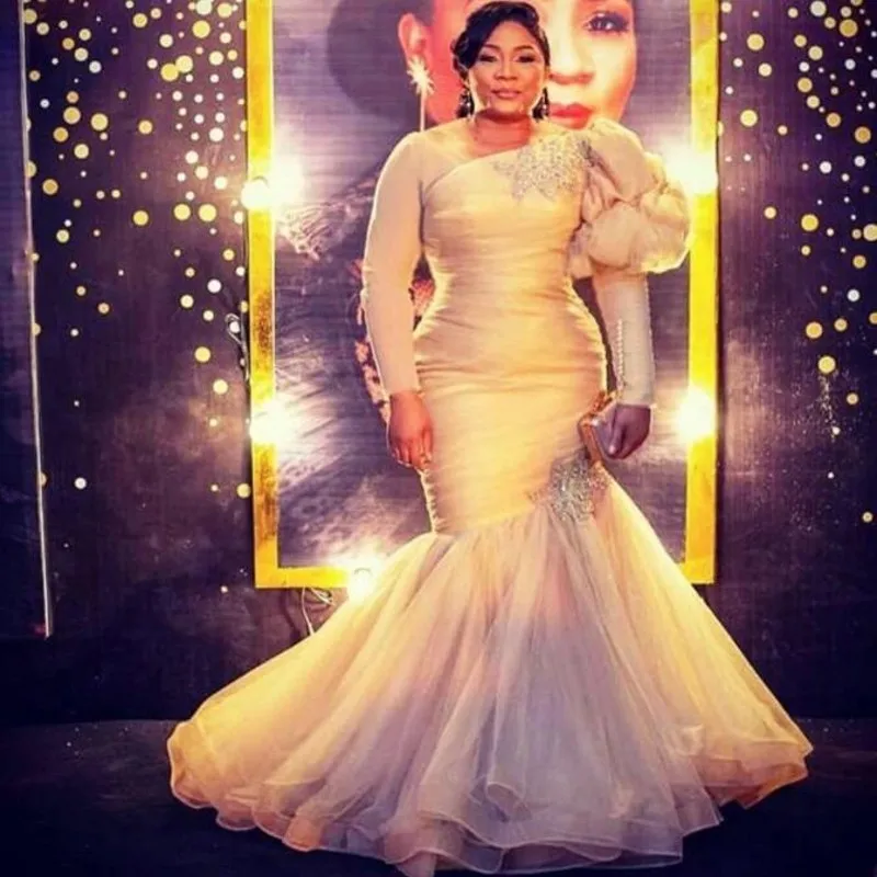 Вечернее платье-Русалка Aso Ebi, вышитые бисером, с оборками, для выпускного, платья для вечеринки, с длинными рукавами, размера плюс