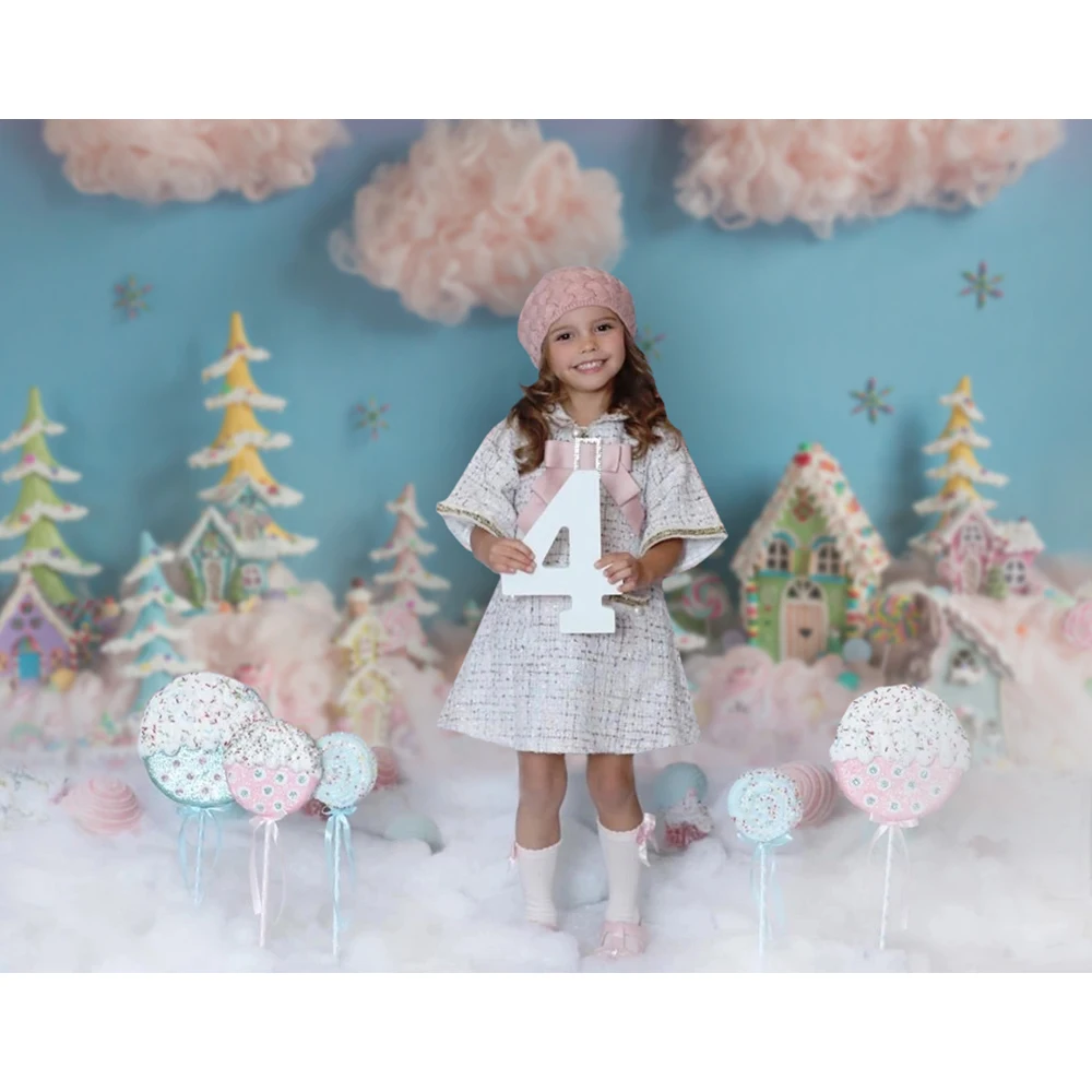 Студийный фон для фотосъемки детей с изображением домика конфет для первого дня рождения