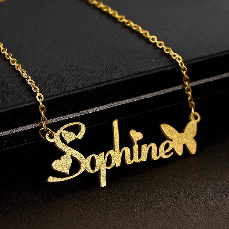 Персонализированное ожерелье с матовым именем, ожерелье с именем бабочки на заказ, ожерелье с именной табличкой из нержавеющей стали, чокер для женщин, подарки, ювелирные изделия