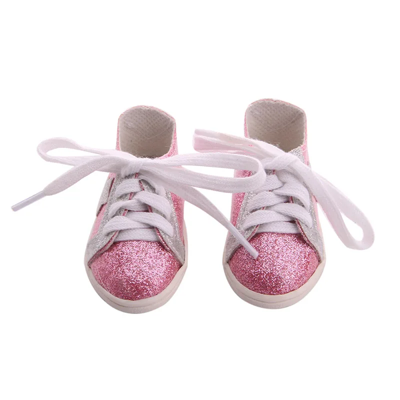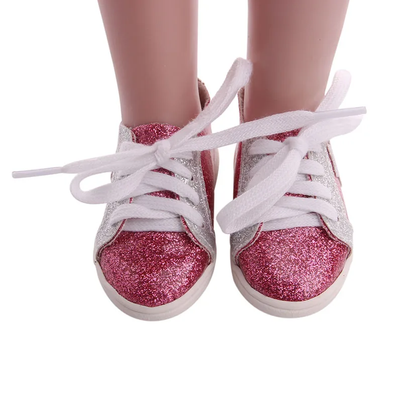 Парусиновая обувь для куклы, модная розовая с блестками, 7 см, 18 д...