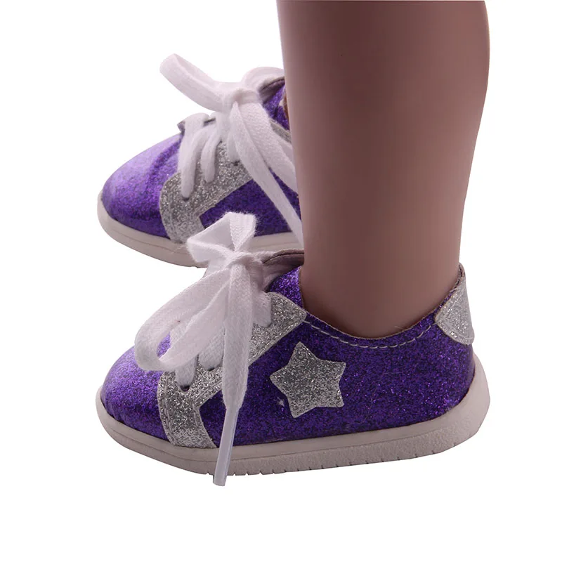 Туфли для кукол, однотонные, с блестками, с пятиконечной звездой, с ремешком для 18-дюймовой американской куклы, для девочек-новорожденных 43 см