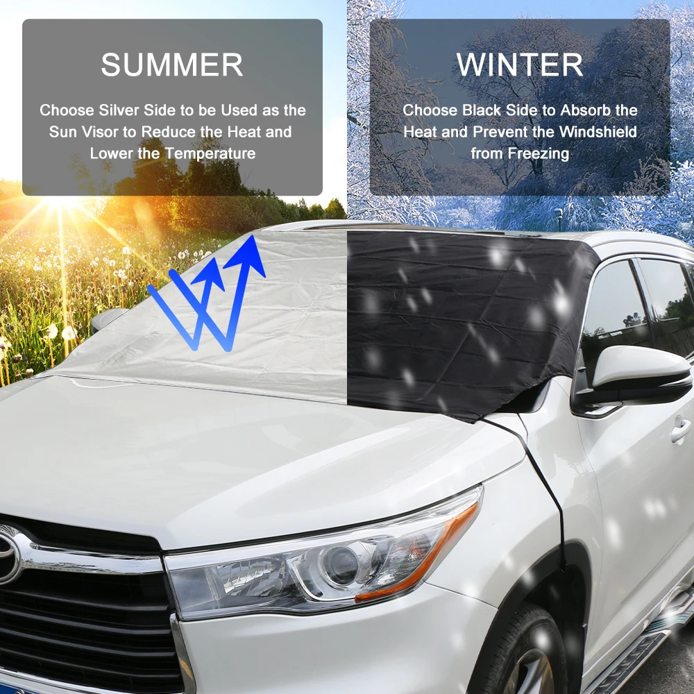Описание товара:* 100% новый и высокое качество* Чехол для снежной погоды изготовлен из водонепроницаемой полиэфирной ткани.* Ветровое стекло автомобиля легко складывается для хранения в багажнике или на задних сидениях вашего автомобиля.* Компактный дизайн. Чтобы гарантировать, что передняя крышка лобового стекла вашего автомобиля не может быть легко открыта. Даже самые сильные ветры не подходят для этих ветровых покрытий.* Устойчив к дождю, морозам, снегу, УФ-лучам, пыли, можно использовать в качестве защитного покрытия для снега зимой и солнцезащитного козырька для лобового стекла летом.* Простота установки, инструмент не требуется.* Вы можете носить его в любом месте/каждый раз в вашем автомобиле, когда нет использования.Характеристики:Размер изделия: 210 см * 120 см (подходит для внедорожников или автомобилей)Размер сумки для хранения: 21 см * 17 смЦвет: серебристый (солнцезащитный) и черный (зимний чехол)Материал: полиэфирная тканьПосылка включает в себя:1 х крышка для лобового стекла1 х сумка для храненияПримечание:1. Цвет товара, отображаемый на фотографиях, может немного отличаться на мониторе вашего компьютера2. Если вы предоставляете модели, мы можем поддержать Ваш автомобиль снег Блок Настройки3. Если у Вас возникли какие-либо проблемы при покупке товара, пожалуйста, свяжитесь с нами вовремя