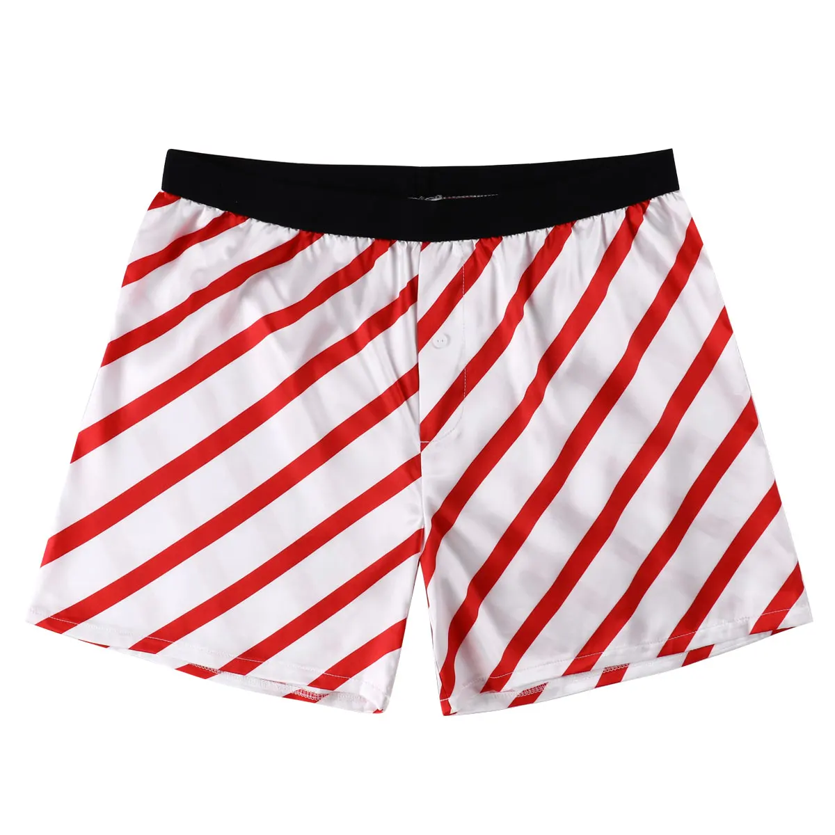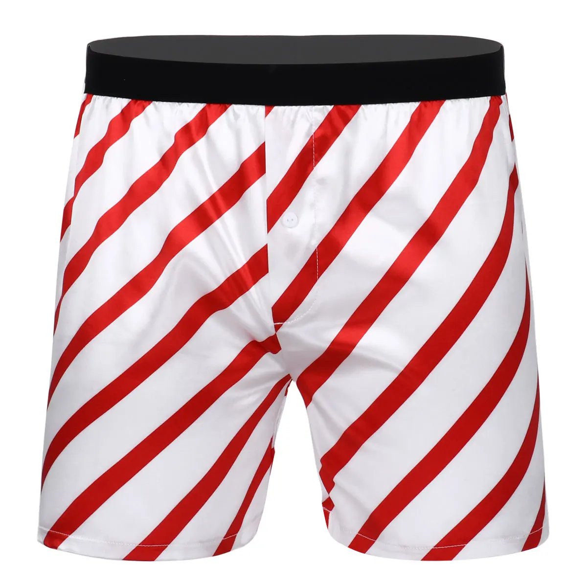 Боксеры мужские в полоску, Классическое нижнее белье, гладкие шелковые атласные шорты-боксеры, свободные шорты для отдыха, одежда на Рождество