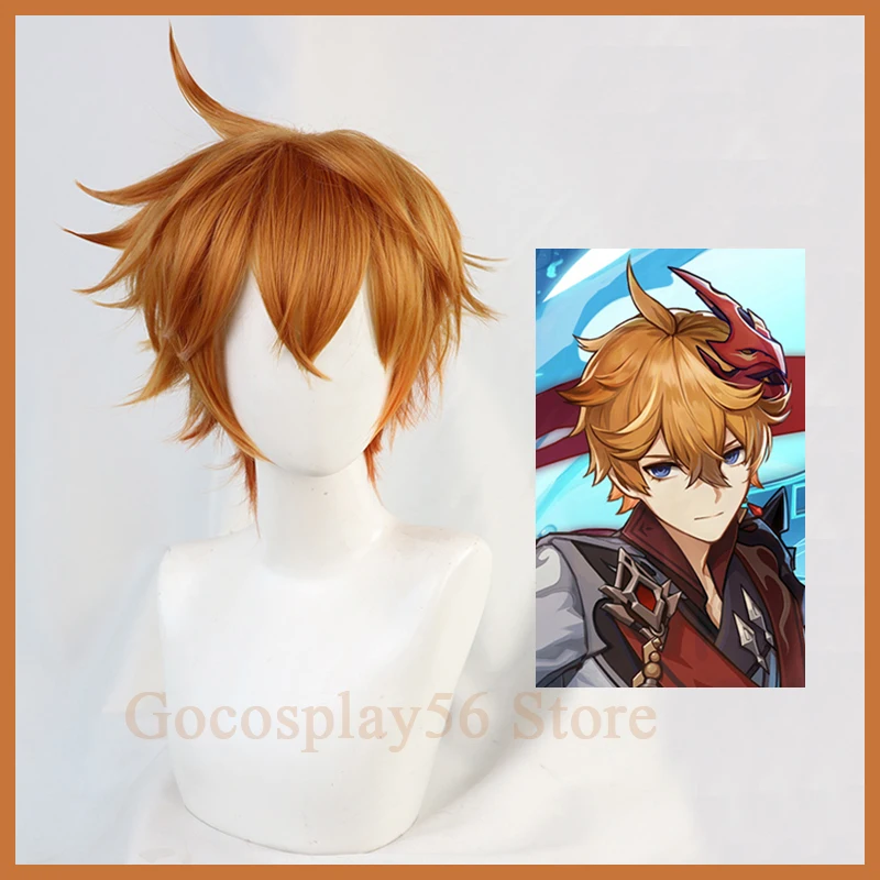 Парик тартаглии Genshin Impact, для косплея, для детей, с короткими градиентными золотыми, коричневыми, термостойкими волосами, для ролевых игр на Хэллоуин