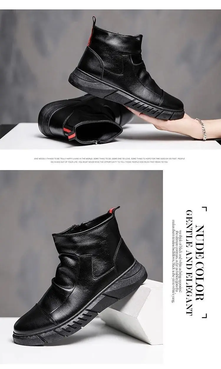 Мужские зимние сапоги для мужчин прочная, долговечная подошва кожаная обувь для мужчин 2020 Новая мода на плюшевой подкладке; Теплые меховые зимние ботинки мужские ботинки