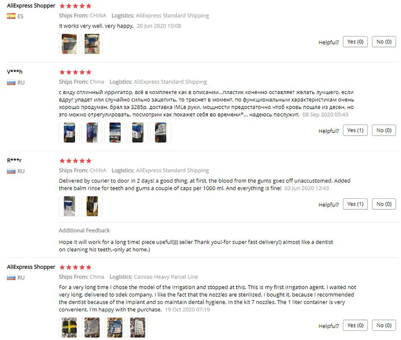Доставка быстрая, дня 3-4 шло. Ирригатор отличный мощный, работает исправно, но несколько шумно. Щетку не заменяет, но дополнительно повыбивать застрявшие кусочки пищи между зубов или из-под коронок может. Мы пользуемся не каждый день, т.к. работает шумновато и если вечером ребенок уже спит, то лишний раз не включишь. К тому же, наливать надо подогретую теплую воду, т.к. на воду просто комнатной температуры лично у меня эмаль реагирует как на холод. Все эти танцы с бубном снижают мотивацию к каждодневному использованию. В общем, зубная щетка forever!!!))) Но если вы - маньяк кристальной чистоты, то рекомендую!