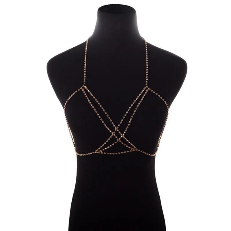 Женское бикини с кристаллами на талию, цепочка на грудь, ожерелье для бюстгальтера, подвязки для ног, богемные пляжные украшения