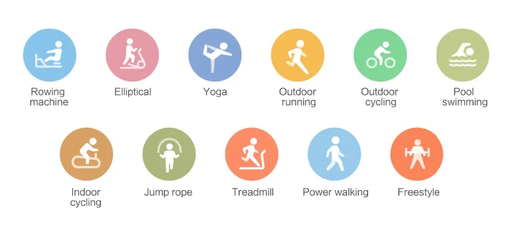 Поддержка йоги, гребной машины, скакалки и многого другого в первый раз, точный мониторинг и анализ каждого шага, который вы делаете. Отслеживает и анализирует частоту сердечных сокращений, темп и сожженные калории, чтобы помочь вам достичь ваших целей по похудению.