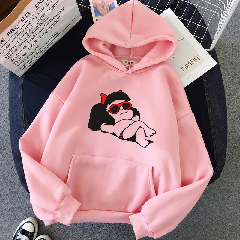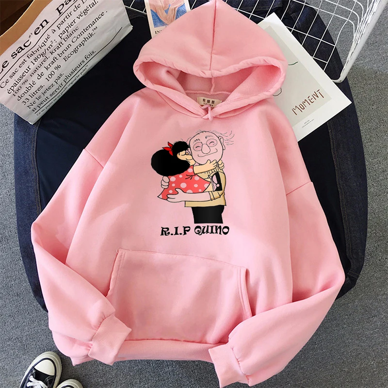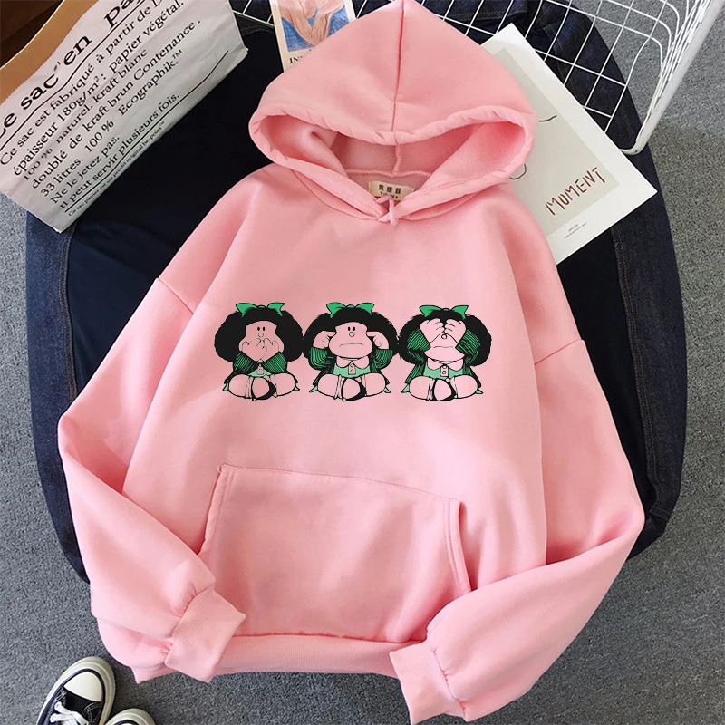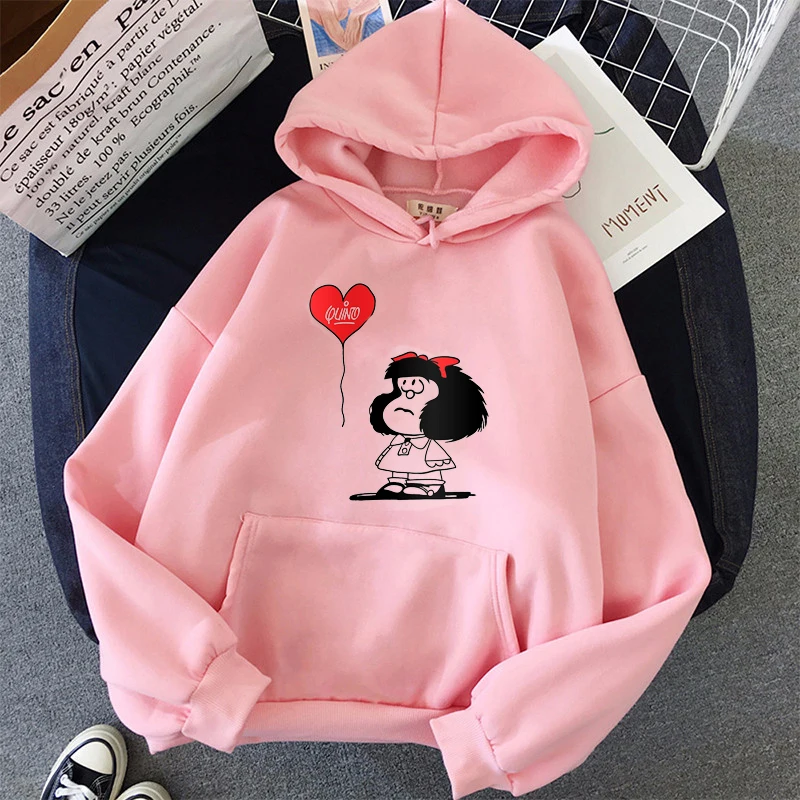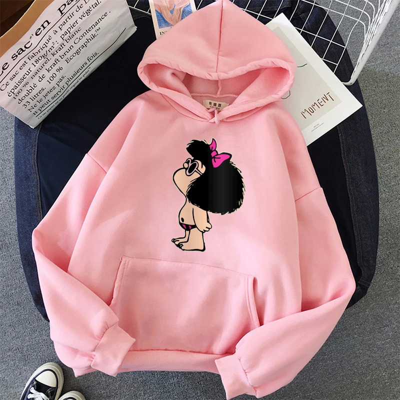 Толстовка Mafalda женская с мультяшным принтом, повседневный Свитшот оверсайз, худи в стиле хип-хоп, уличная одежда, осень-зима