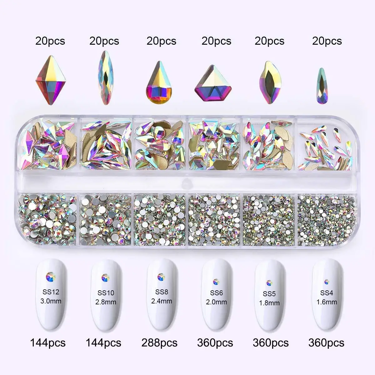 Модный дизайн ногтей 3D Стразы в комплекте красочные стеклянные камни для дизайна ногтей