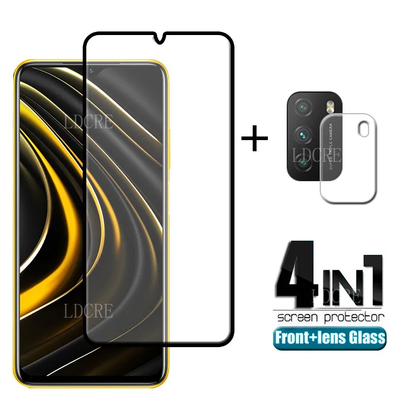Полное покрытие закаленное стекло для Xiaomi Poco M3 Полный клей протектор экрана для Poco M3 Стекло камеры для Xiaomi Poco M3 Стекло 6.53 "