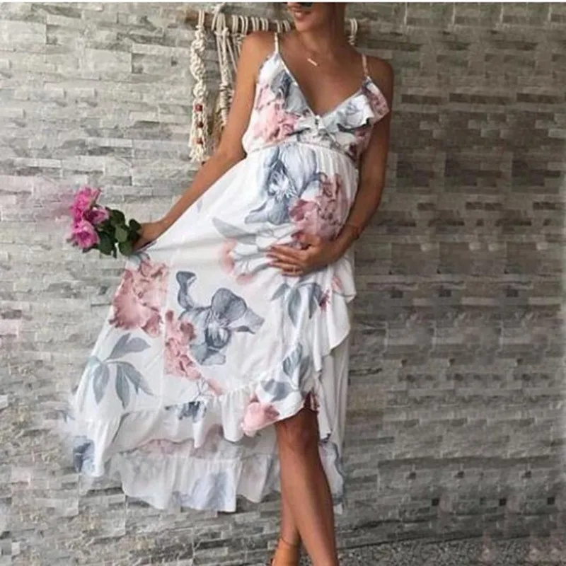 Платья для беременных Одежда для беременных с цветочным принтом с оборками сарафан с оборками для беременных женщин Элегантные повседневные платья для беременных