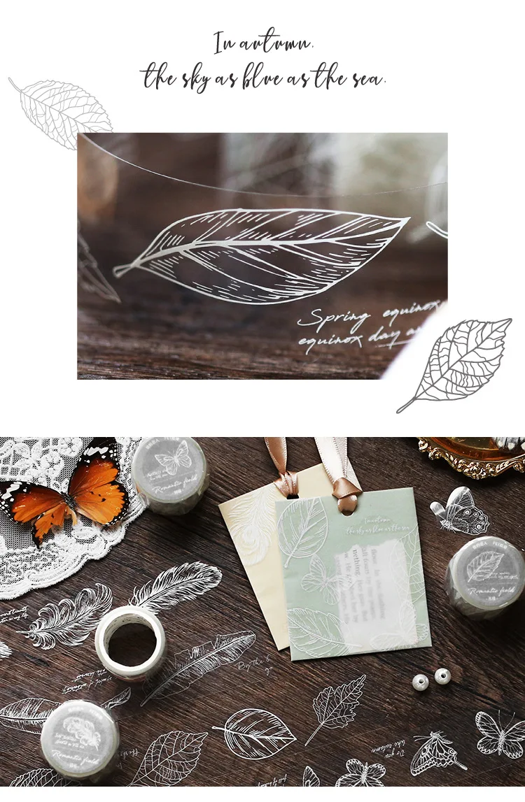 Клейкая лента для скрапбукинга, с перьями, бабочками, растениями