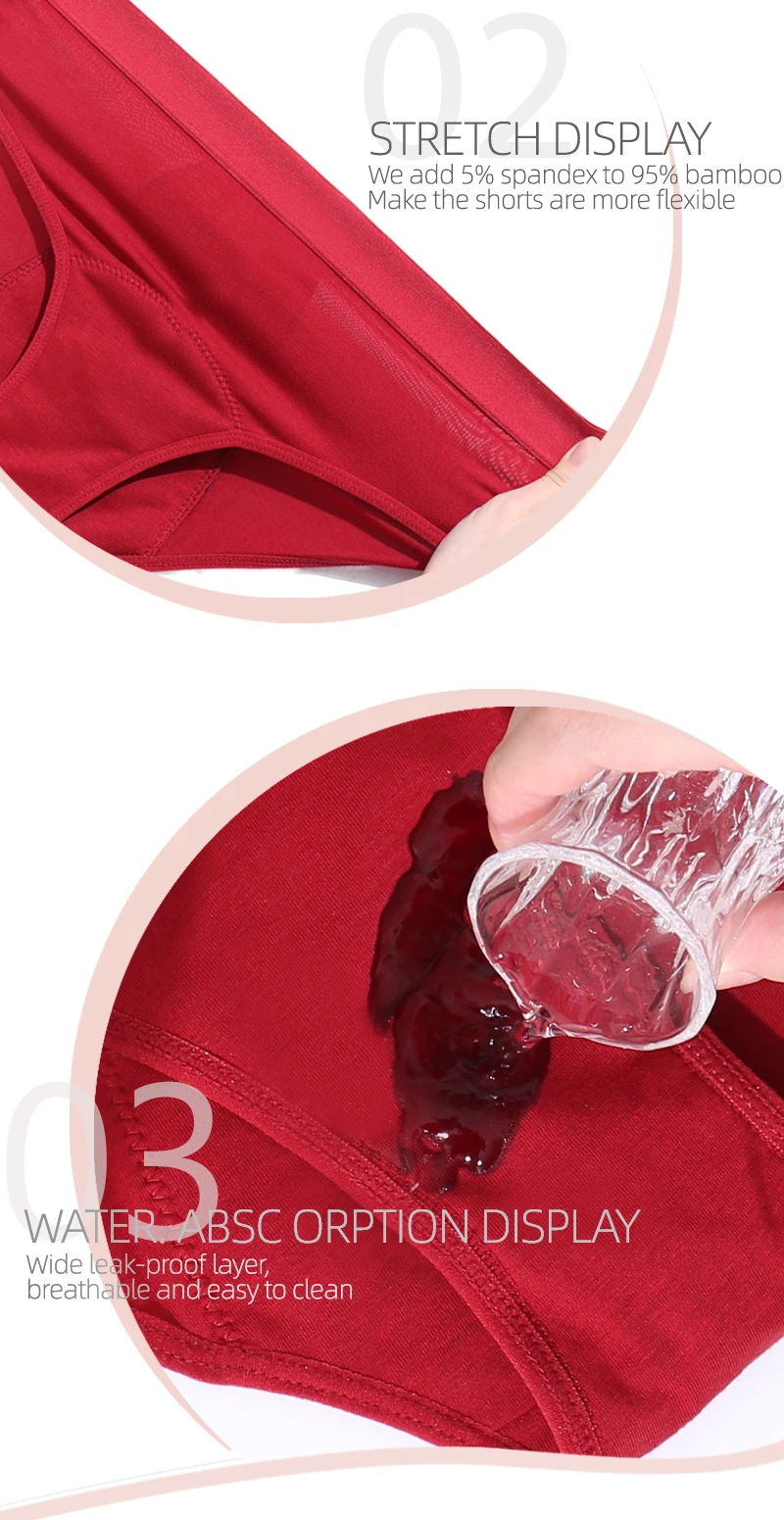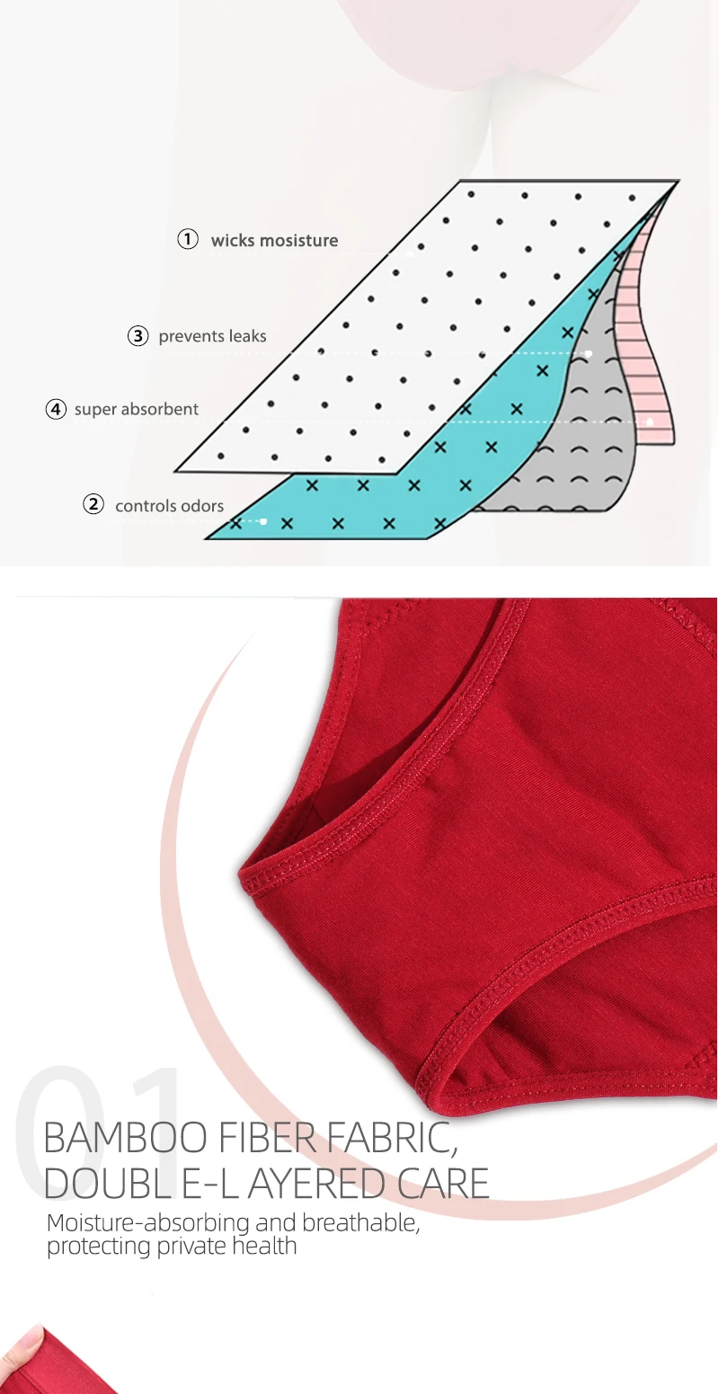 Женские бамбуковые четырехслойные герметичные менструальные трусики, дышащие, быстровпитывающие, с высокой талией, нижнее белье для девочек, Прямая поставка
